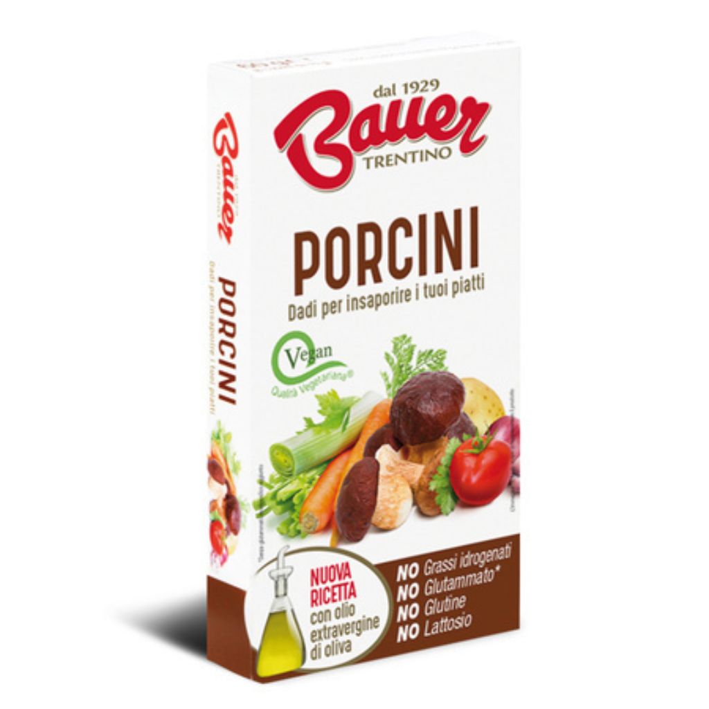 Skład: ekstrakt z białkowego bulionu soi i kukurydzy, sól jodowana (37%), olej palmowy, suszone borowiki (7,9%), suszone warzywa (3,9%), oliwa z oliwek extra vergine (3,6%)