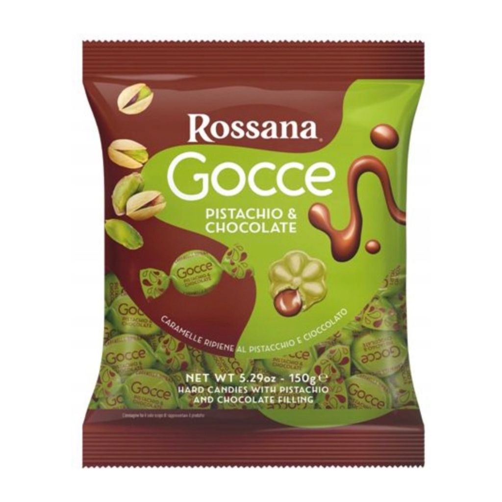 Rossana Gocce to małe, eleganckie słodkości o miękkim sercu i pistacjowej duszy. Każdy cukierek skrywa w sobie kremowe nadzienie gianduja — gładkie, aksamitne, z nutą kakao i orzechów laskowych — otulone delikatną pistacjową warstwą. Smak jest harmonijny i pełny: najpierw miękka słodycz, potem orzechowa wyrazistość, a na końcu subtelne, włoskie „dolce”, które zostaje na podniebieniu.