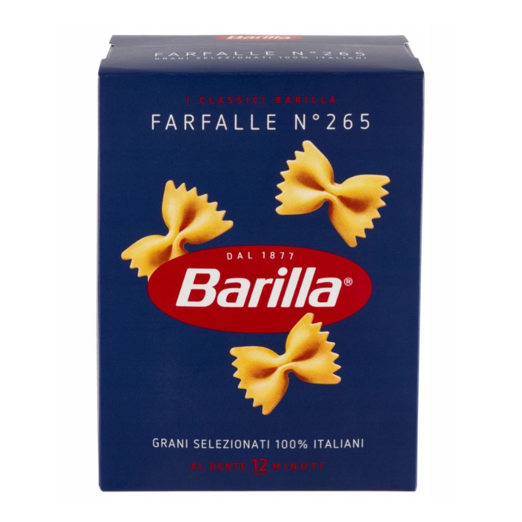 Makaron kokardki Farfalle nr 265 Barilla to prawdziwa gratka dla wielbicieli włoskiej klasyki w radosnym, eleganckim wydaniu. Kokardki z pszenicy durum nie tylko zachwycają formą, ale również świetnie trzymają sos – ich pofałdowana faktura sprawia, że każda porcja to pełnia smaku w każdym kęsie.