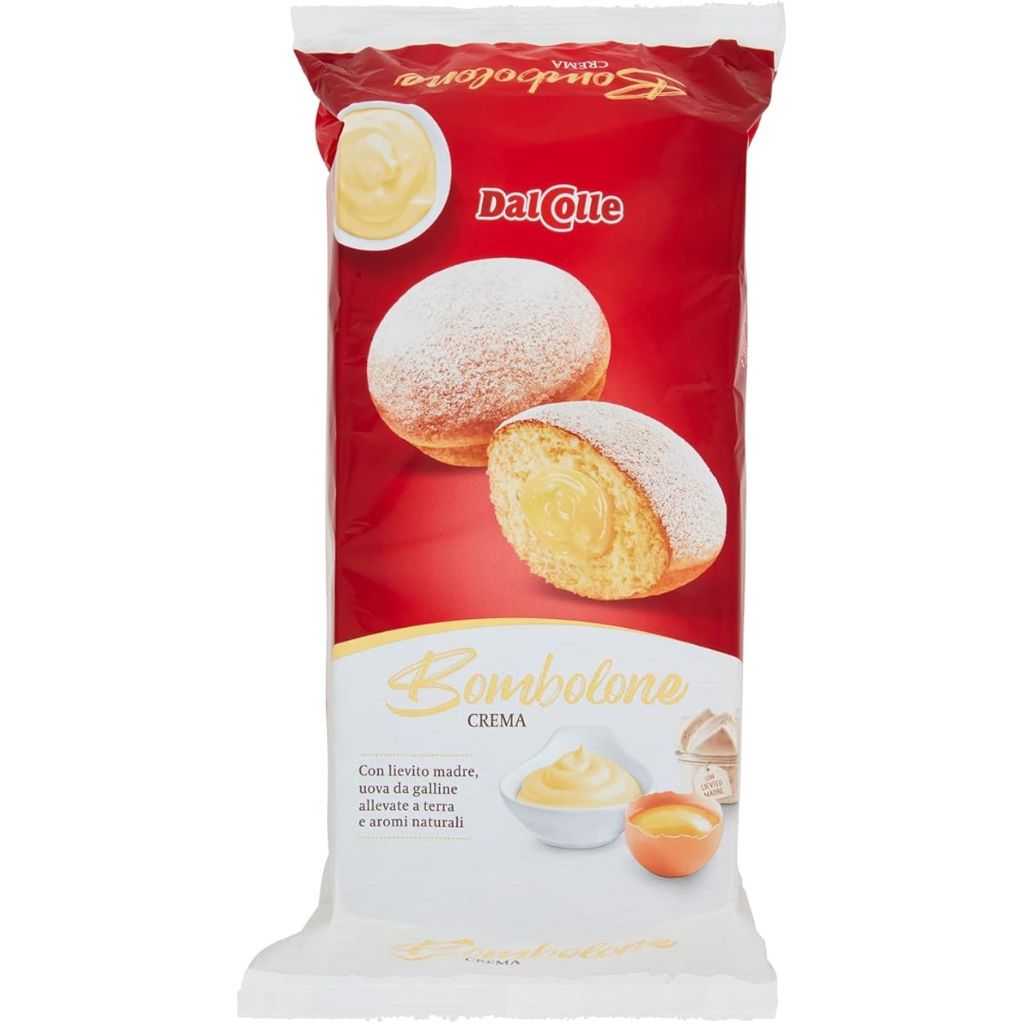 Pączki DalColle z kremowym nadzieniem to smak włoskiej pasticcerii w jej najbardziej komfortowej odsłonie – miękkie, puszyste, delikatnie słodkie. Kojarzą się z porankiem w barze, kiedy do cappuccino bierze się jeszcze ciepkie bombolone, a dzień dopiero nabiera tempa. Ciasto jest lekkie i sprężyste, a wnętrze wypełnia gładki, waniliowy krem, który rozpływa się w ustach bez nadmiaru ciężkości.