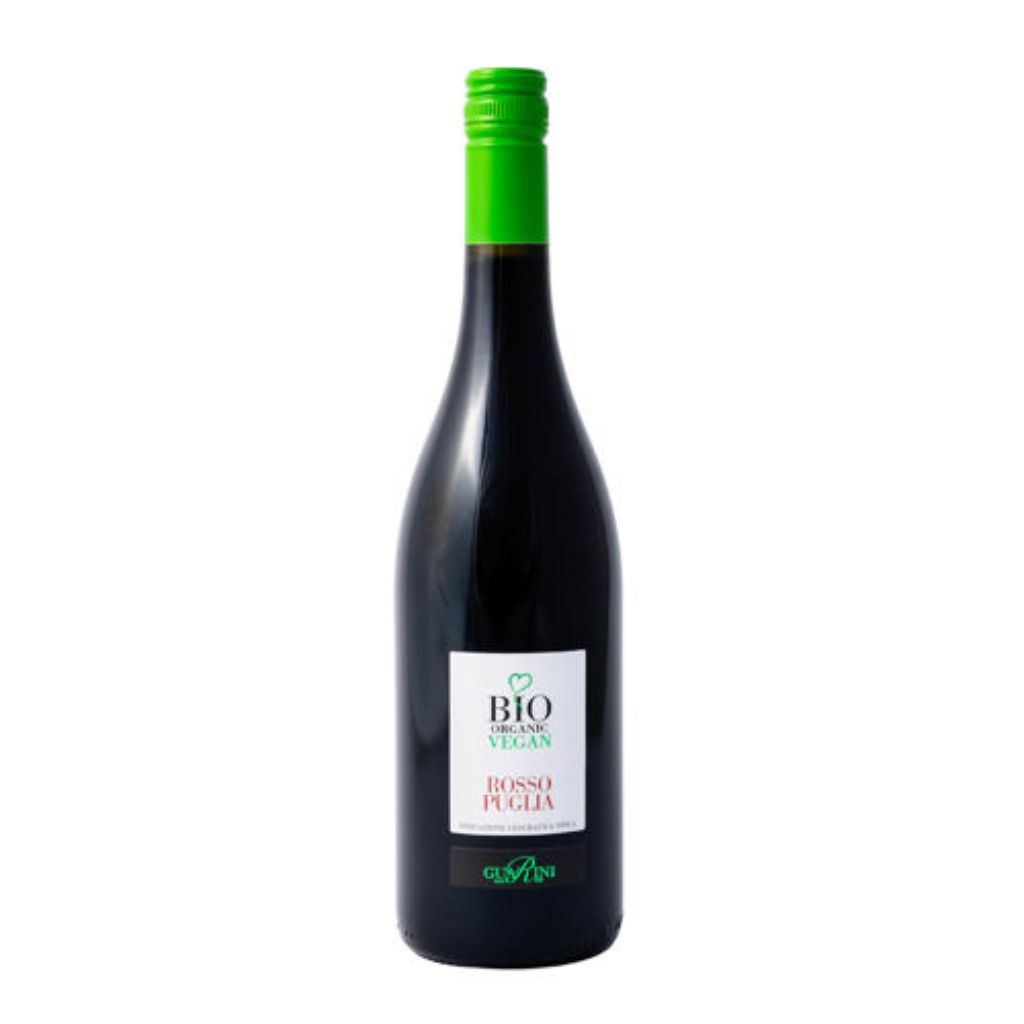 Wino czerwone Rosso di Puglia bio vegan 750ml Guarini to kwintesencja południowego słońca i włoskiej duszy w kieliszku. Powstałe z winogron uprawianych w ekologicznych winnicach Apulii, to wino zachwyca głęboką, rubinową barwą i urzekającym aromatem czerwonych owoców – wiśni, jagód i malin, z delikatnym akcentem śródziemnomorskich ziół.