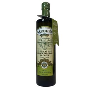 Oliwa z oliwek Extra Virgin CASTELLO DI RESULTANO 750ml Barbera to wyrafinowany produkt sycylijskiego kunsztu, pochodzący z renomowanego regionu DOP Val di Mazara. Tłoczona na zimno z najlepszych oliwek, zachwyca intensywnym aromatem, owocową nutą i wyważoną goryczką.