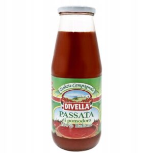 Przecier POMIDOROWY 680g DIVELLA to czysta esencja włoskiego słońca i dojrzewających w nim pomidorów. Wyprodukowany wyłącznie ze świeżych, soczystych pomidorów i szczypty soli – bez zbędnych dodatków – zachwyca intensywnym smakiem i aksamitną konsystencją.